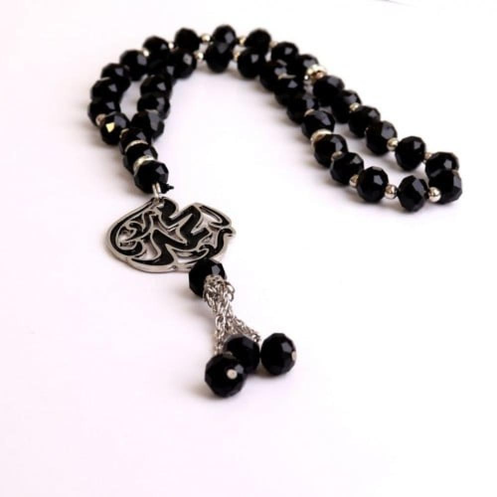 سبحة نحت الاسم بلون ذهبي او فضي مبطن باسود
