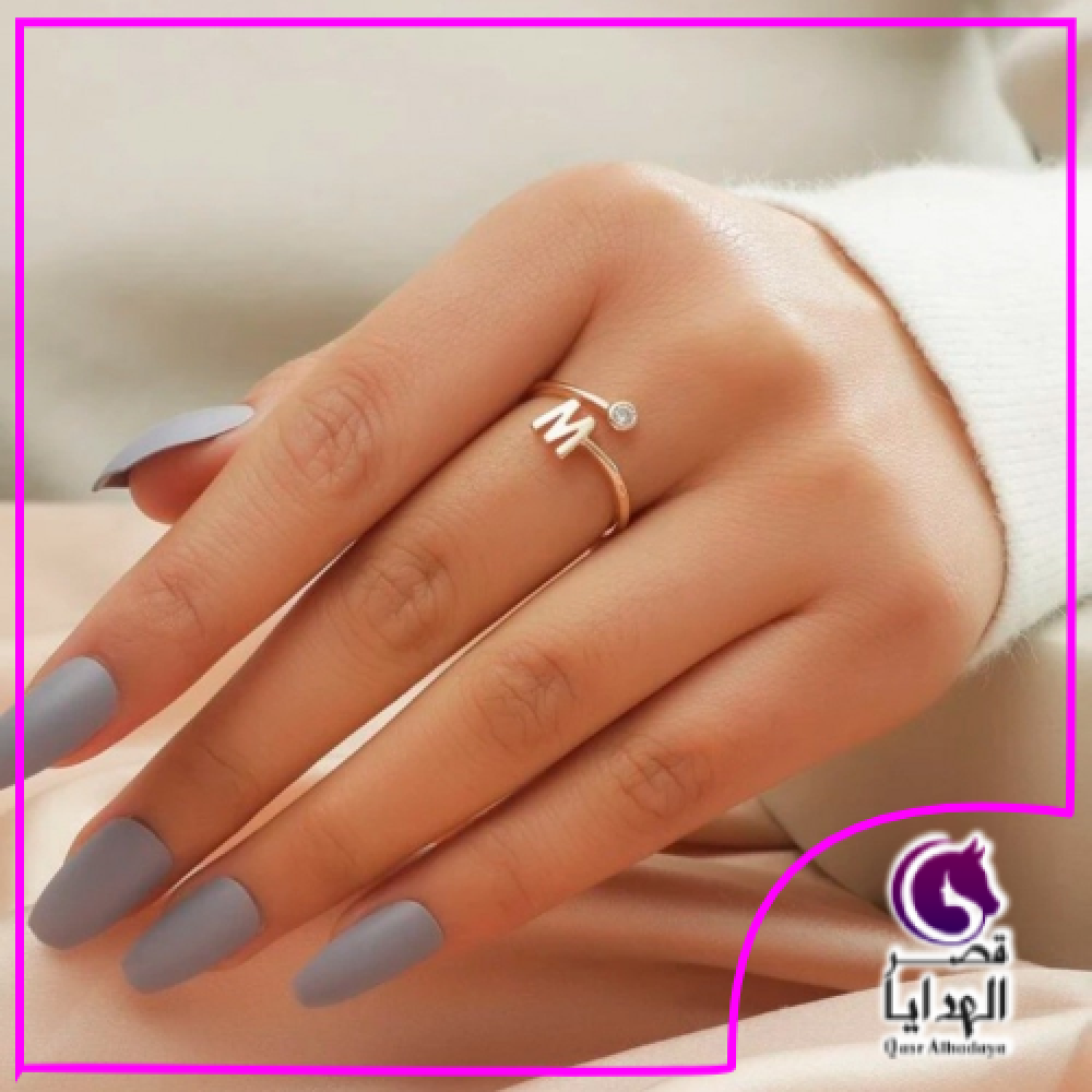 يُقدم لك "قصر الهدايا" خاتمًا أنيقًا بتصميم فريد ومميز، حيث يمكنك اختيار الحرف الذي تفضله ليُزين إصبعك بأجمل شكل.