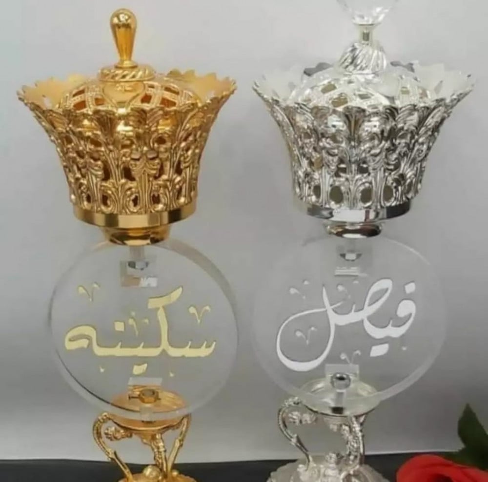 •طقم مباخر اكريلك بالاسم ذهبي او فضه